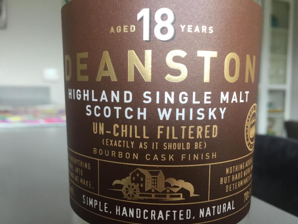 This is the older-style bottle of the 18 year-old Deanston – the packaging may have had a slight face-lift but the whisky inside is the same. The label says ‘bourbon cask finish’, which is a bit vague (e.g. was it not in ex-bourbon casks for the main part of its maturation?). After checking with the distillery I can confirm that this whisky spends its first 16 years in refill bourbon casks and is then transferred to first fill bourbon for the final two years.