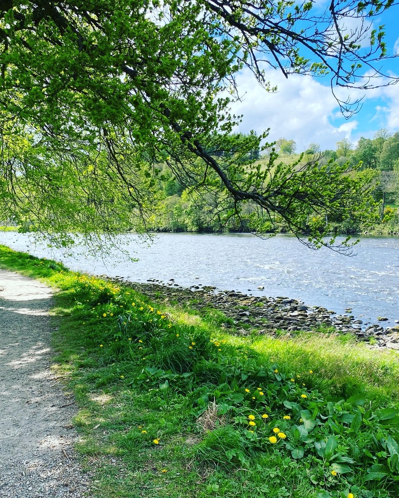 The drive from Dundee to Aberlour was very pleasant overall. We decided to stick to the motorways on the East of Scotland, before turning West at Aberdeen. It took about two and a half hours including a stop, and we arrived with about half an hour to spare before my tasting at 2pm. The location of our AirBnB was absolutely ideal – about three minutes walk to Aberlour distillery, and about the same to the mighty River Spey. The view from the garden, as you can see, wasn’t bad either.