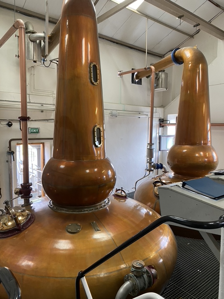 As you can see below, it’s a small distillery – just one wash still and one spirit still, a far cry from big whisky factories like Glenfiddich. Gordon explained that they do a peated run for a few weeks every year, spending a few days afterwards to rinse the peat off the system.