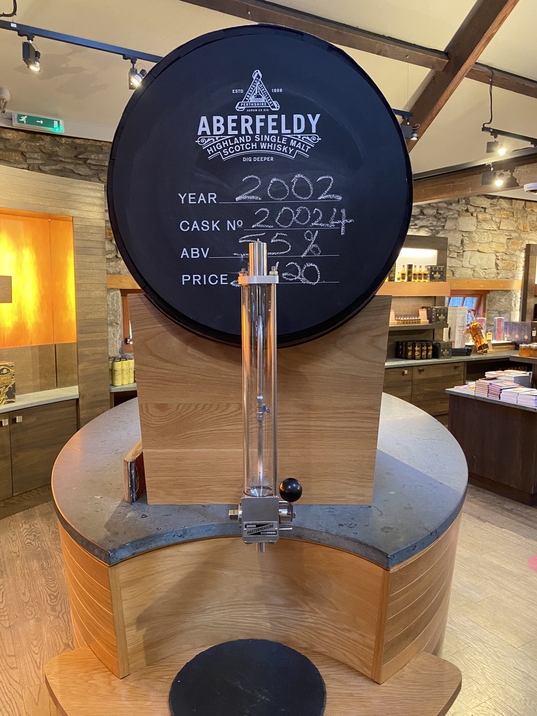 The timing was particularly good, since just as I finished paying for it, a coachload of tourists arrived – not unusual given that it’s the home of Dewar’s after all. That made for a rather chaotic atmosphere – the big space of the visitor centre and the small number of staff (they were possibly understaffed due to the pandemic) made it difficult for customers to be seen, which resulted in big groups huddled around the cask, bar and cafe areas waiting to be served. This was also an issue at Glen Moray to an extent, although it was easier for the staff there as the space is more intimate.