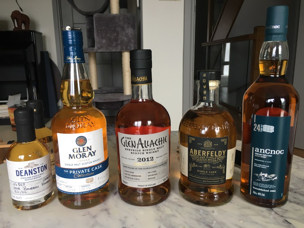 And so my whisky travelogue through Speyside and the Southern Highlands has reached its conclusion – I’ll leave you with a photo of all the bottles I brought back – hand-fills from Deanston, Glen Moray, Glenallachie and Aberfeldy, and the amazing anCnoc 24: